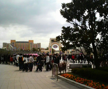ぐるりとUSJの外を並んでます。